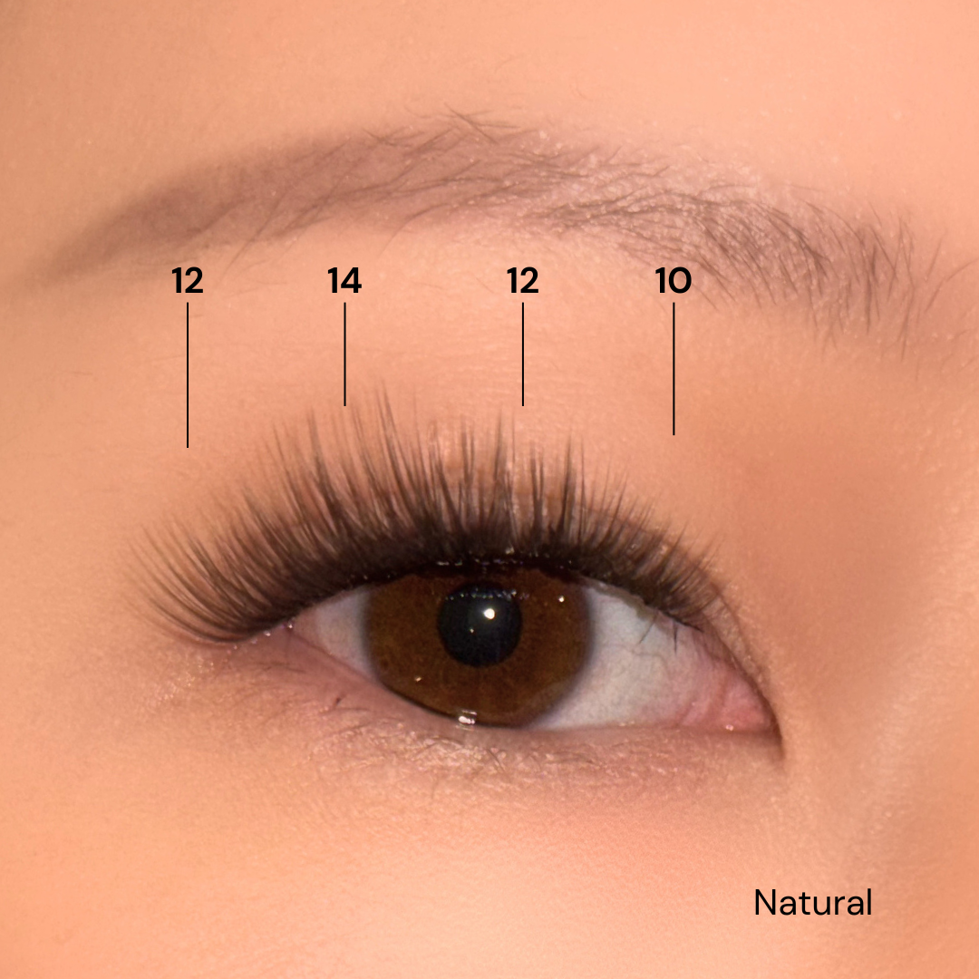 Dusk is the wispy and voluminous older sister of our styles with delicate fans that spread perfectly into a sought after full look many aim to achieve with lash extensions. Comprising six fans in each cluster crafted from 100% Korean silk, these lashes are meticulously designed to preserve our signature weightless feel while delivering a showstopping appearance.